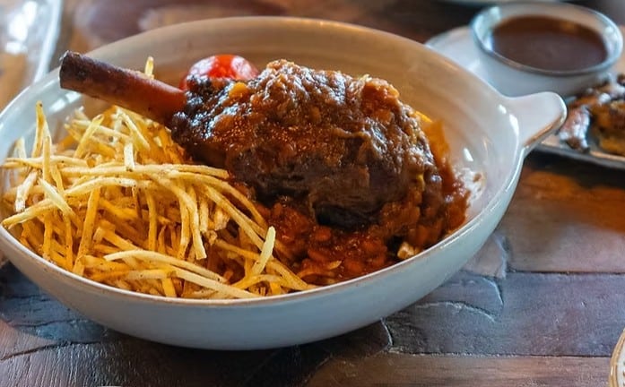 Customers can savor dishes like Wild Mushroom Borani, layered with garlic labneh and black garlic chili oil, or Mahiche Gheymeh with saffron-tomato-braised lamb shank. Other crowd-pleasers include the Wagyu Chenjeh Kabob with Australian wagyu and fenugreek seasoning and tarragon chimichurri or the colossal wild shrimp kabob.